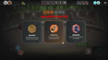 Blood boils with defeat, but the journey doesn't stop. Unleash your fury in a Rematch to challenge the same opponent instantly. No time for regrets—only vengeance!